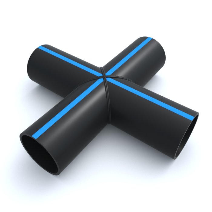 Крестовина сварная равнопроходная ПНД 90º 630x450x1530 мм SDR-26 дает возможность создавать различные углы при создании трубопроводов